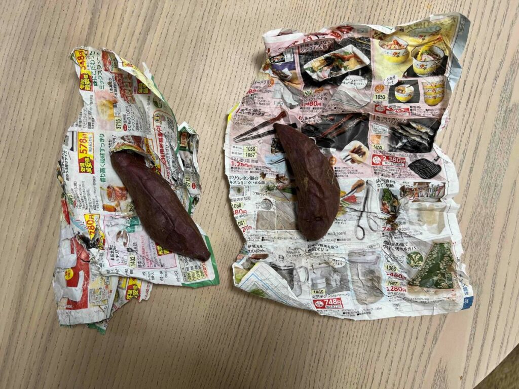 つまり、アルミホイルは「蒸し芋寄り」の仕上がりになる。
